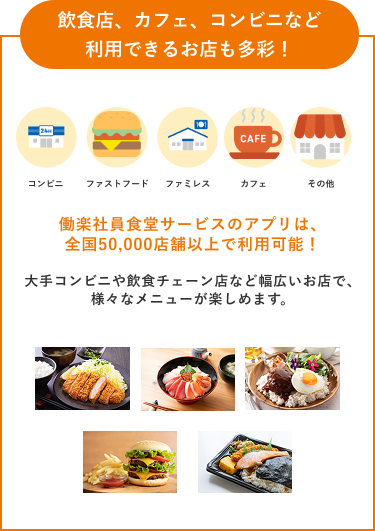 飲食店やコンビニで、専用アプリを使って支払いを行うことで、従業員のランチ代を実質半額にする福利厚生サービスです。