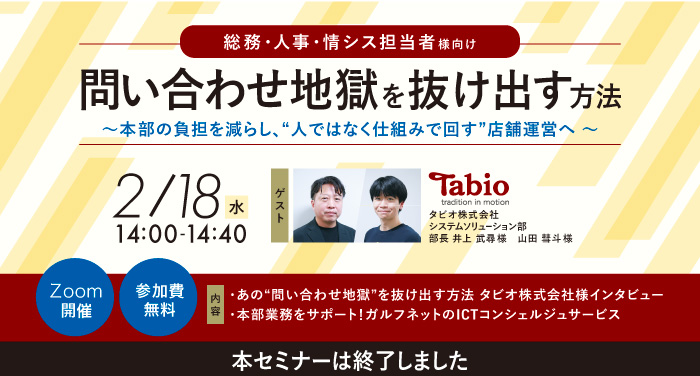 【2/18 オンライン開催】総務・人事・情シス担当者向けセミナー 「問い合わせ地獄を抜け出す方法」のお知らせ<終了しました>