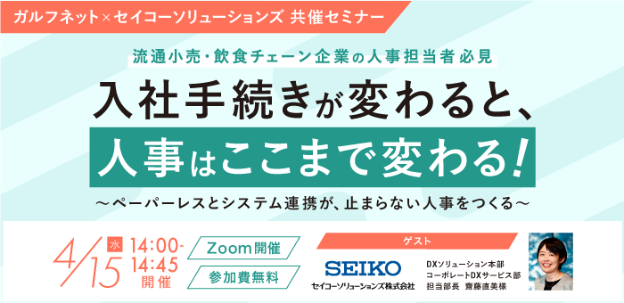 【4/15 オンライン開催】 ガルフネット×セイコーソリューションズ共催セミナー「入社手続きが変わると、人事はここまで変わる!」のお知らせ